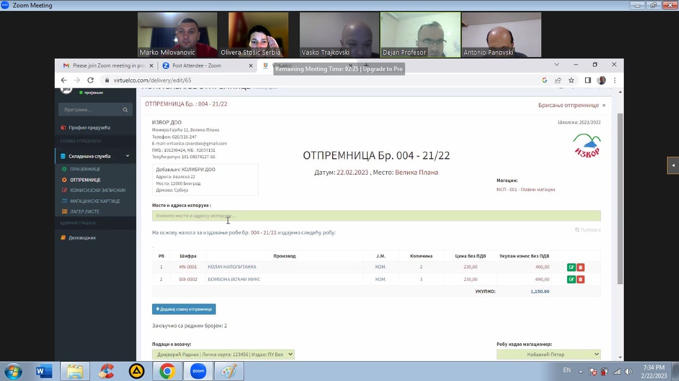 Распоред блок наставе – кувар, конобар, посластичар